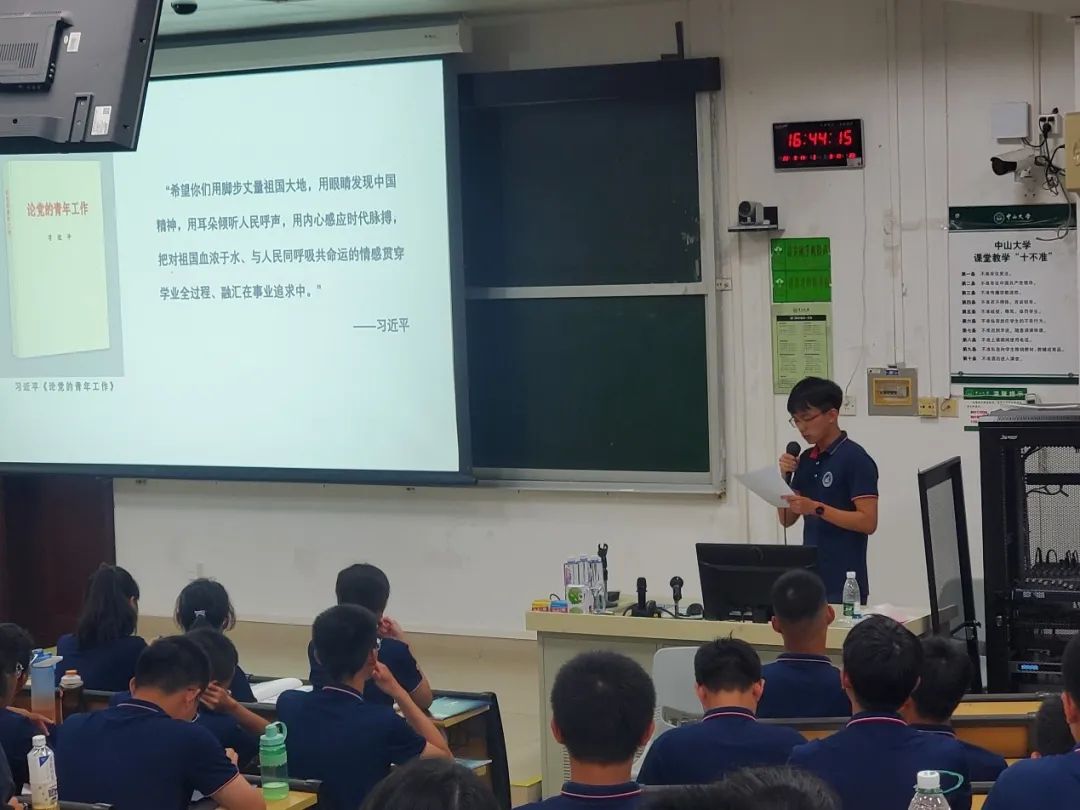 在9月14日的红色入学教育中,刘念副书记带领新生们认识了中山大学的百年校史以及开云链接官网(中国)有限公司-官网的建院发展史,加深了同学们对学校和学院的认识与了解,增强了同学们的归属感与认同感。刘念副书记勉励全体新生,要以积极的心态与实际行动主动适应大学生活,把专业学习作为大学期间的首要任务来认真对待,碰到困难要学会用正规途径寻求帮助。同时刘念副书记号召大家积极向党组织靠拢,坚定不移听党话、跟党走,努力成为堪当民族复兴重任的时代新人,争取早日成为一名光荣的中国共产党员。