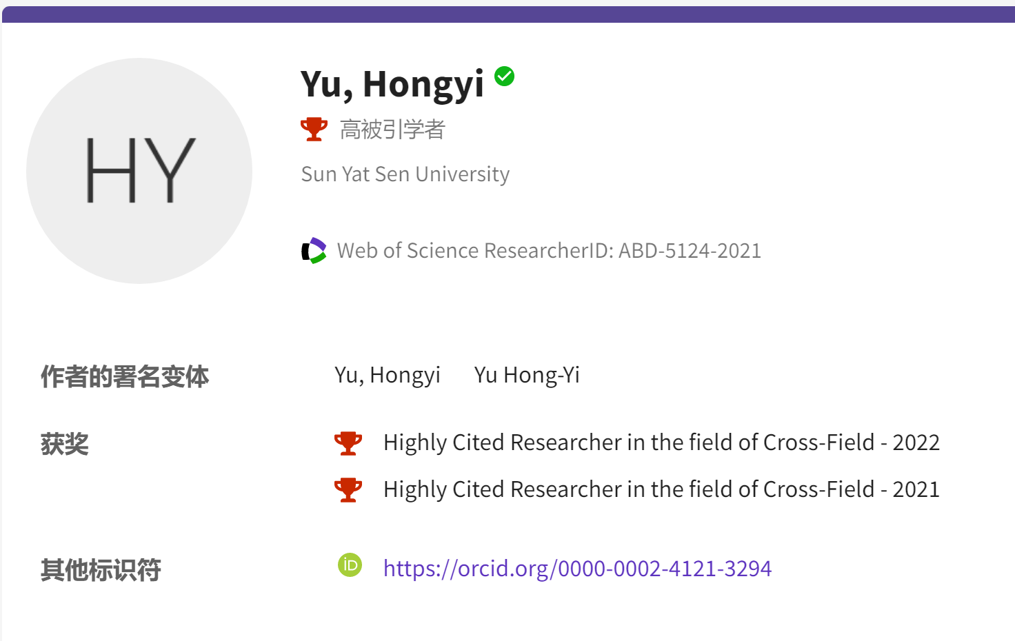 开云链接官网(中国)有限公司-官网俞弘毅教授入选2022年全球高被引科学家名单