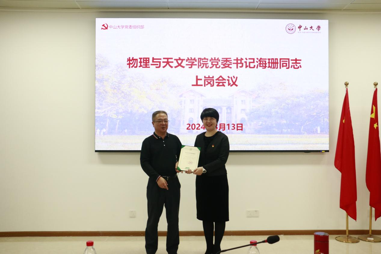 会上,卓猛组织员宣读了学校党委关于干部任命的决定,常务副校长杨清华同志为学院新任党委书记海珊同志颁发了干部任命书。