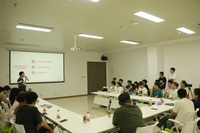 科普讲座开展的同时,来自广州大学附属中学的优秀教师们以其丰富的学科竞赛指导经验,为开云链接官网(中国)有限公司-官网学子带来了一场关于教师行业的就业指导分享。我校2000级物理系校友、广大附中物理竞赛总教练曹卫东老师首先介绍了近年来广大附中在物理竞赛教学和优秀学生培养方面取得的突出成就,并进一步深入剖析了教师行业的发展特点和发展前景。在互动提问环节,曹卫东老师针对就业信息的获取、不同岗位教师的招聘条件、教师应聘时的注意事项等同学们关心的问题一一进行了详细地解答。曹老师激励有志于从事教师行业的同学们怀抱对教育事业的满腔热爱,脚踏实地,扎实掌握教育教学的基本功,在未来的职业生涯中绽放异彩!通过面对面的交流,同学们更加直观地认识到教师行业的相关岗位职责,了解到教师行业发展趋势,进一步提升了对教育行业的认知。