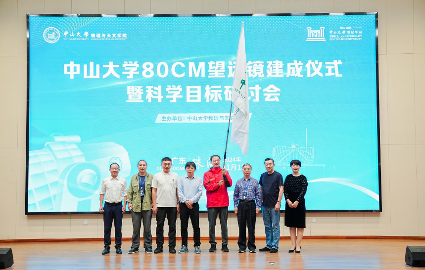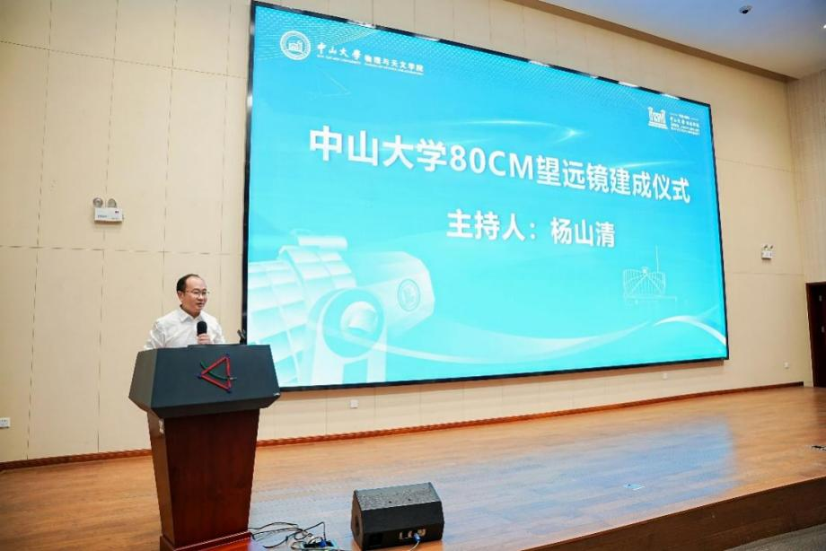 2024年11月15日,中山大学80厘米望远镜建成仪式暨科学目标研讨会在中山大学珠海校区隆重举行。中国科学院院士、紫金山天文台史生才研究员,国家自然科学基金委天文科学处何成处长,广西大学副校长梁恩维教授,中国科学院云南天文台台长陈雪飞研究员,冷湖科创园管委会赵毅副主任以及中山大学科学研究院院长程晓教授、开云链接官网(中国)有限公司-官网院长杨山清教授和党委书记海珊出席仪式为中山大学80厘米红外天文望远镜揭幕。来自国内多所高校和科研院所以及80厘米望远镜所在地青海省冷湖镇的40余位专家学者和相关人员共同见证这一历史性的时刻。仪式由中山大学开云链接官网(中国)有限公司-官网院长杨山清教授主持。